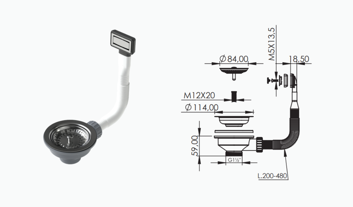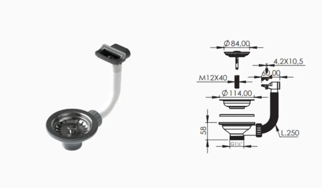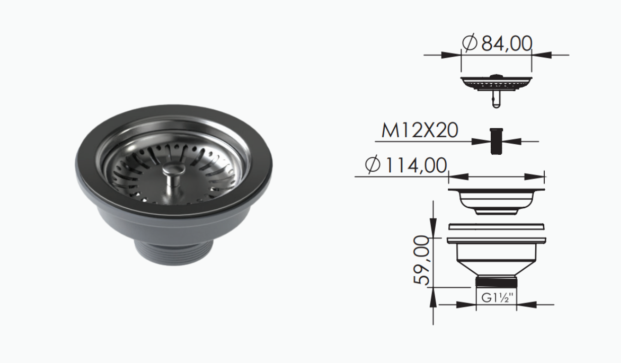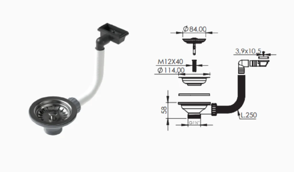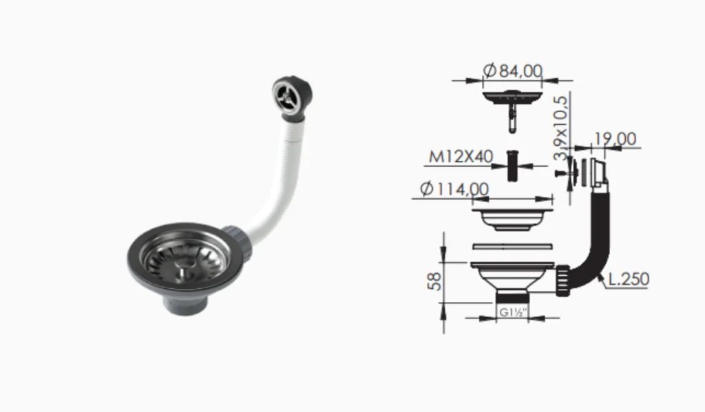 3½ BASKET WASTES FOR Ø90 HOLE IN THE SINK