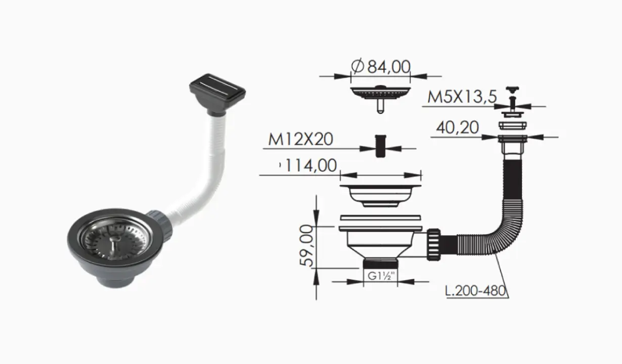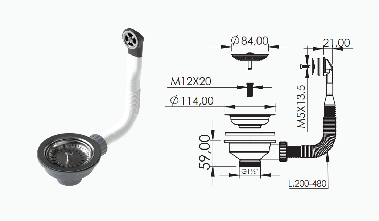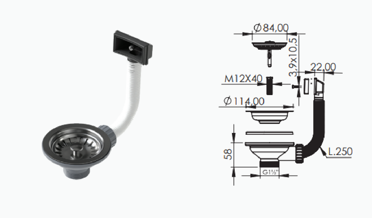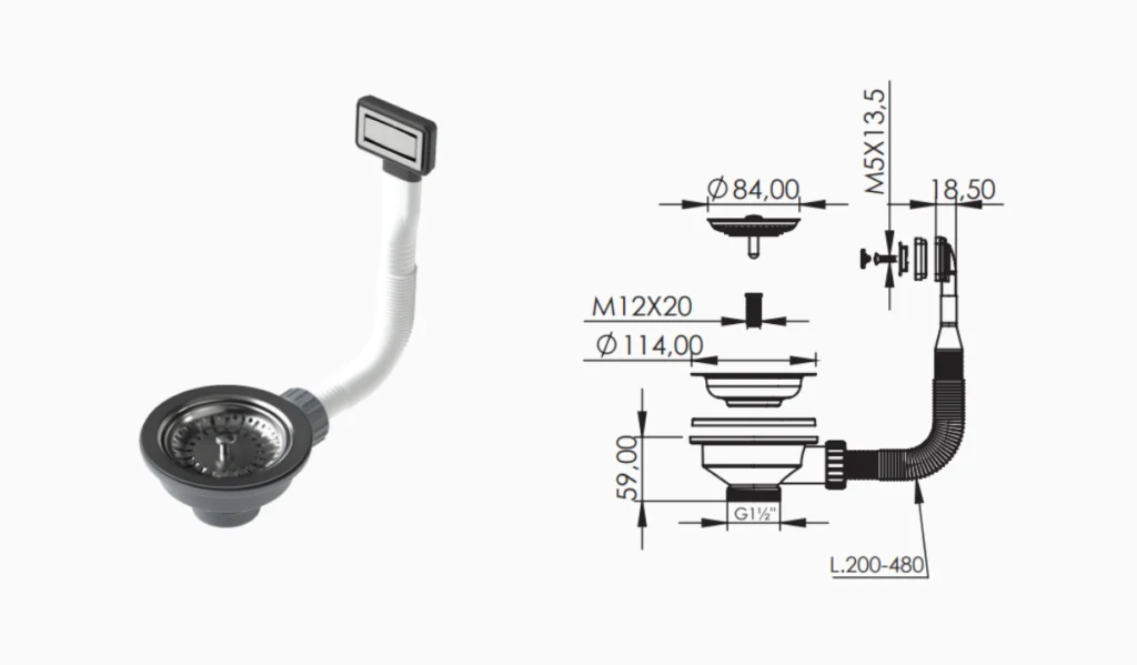 3½ BASKET WASTES FOR Ø90 HOLE IN THE SINK